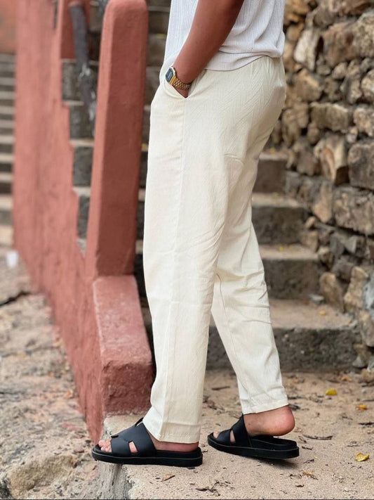 PANTALON EN LIN - BLANC CASSE