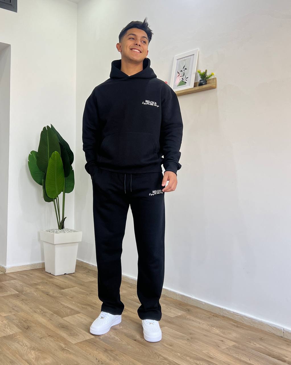 Confectionné en coton de qualité, cet ensemble se compose d’un sweat-shirt et d’un pantalon assorti, tous deux dotés d’une texture unique qui attire le regard. À la fois confortable et élégant, il est idéal pour les occasions décontractées, offrant un style soigné sans compromettre le bien-être